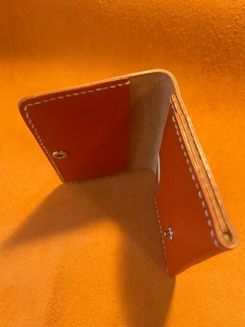 濃いオレンジ色のヌメ革ですので珍しいかと思います。