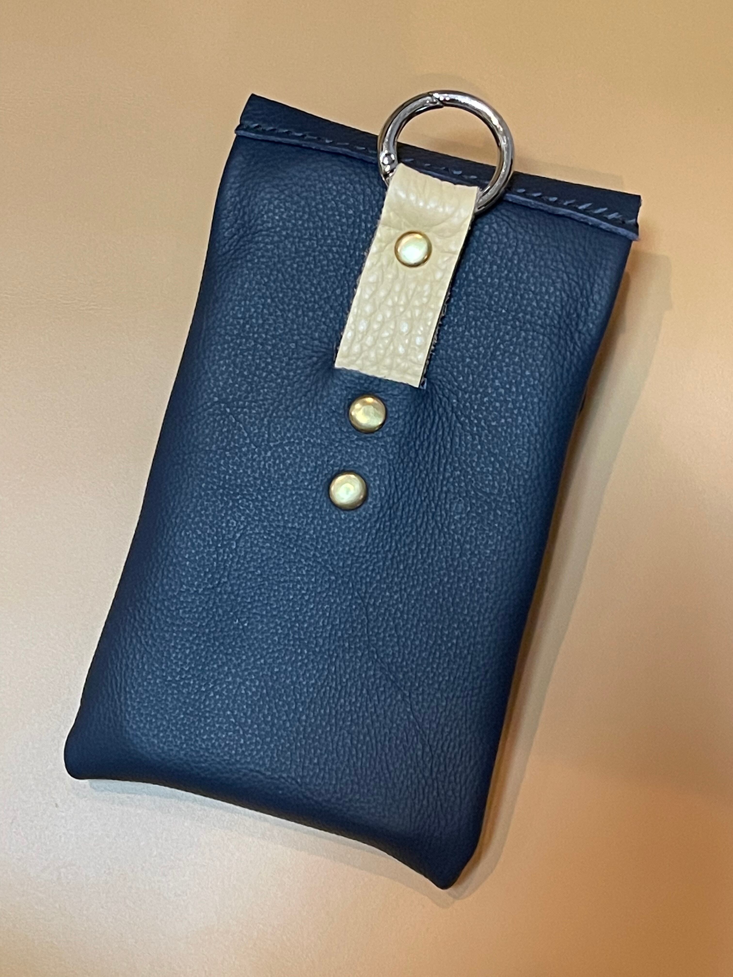 イタリア生まれの質感が良いシュリンクレザー(本革)を使ったリングポーチ(コンビネーションポーチ)になります。