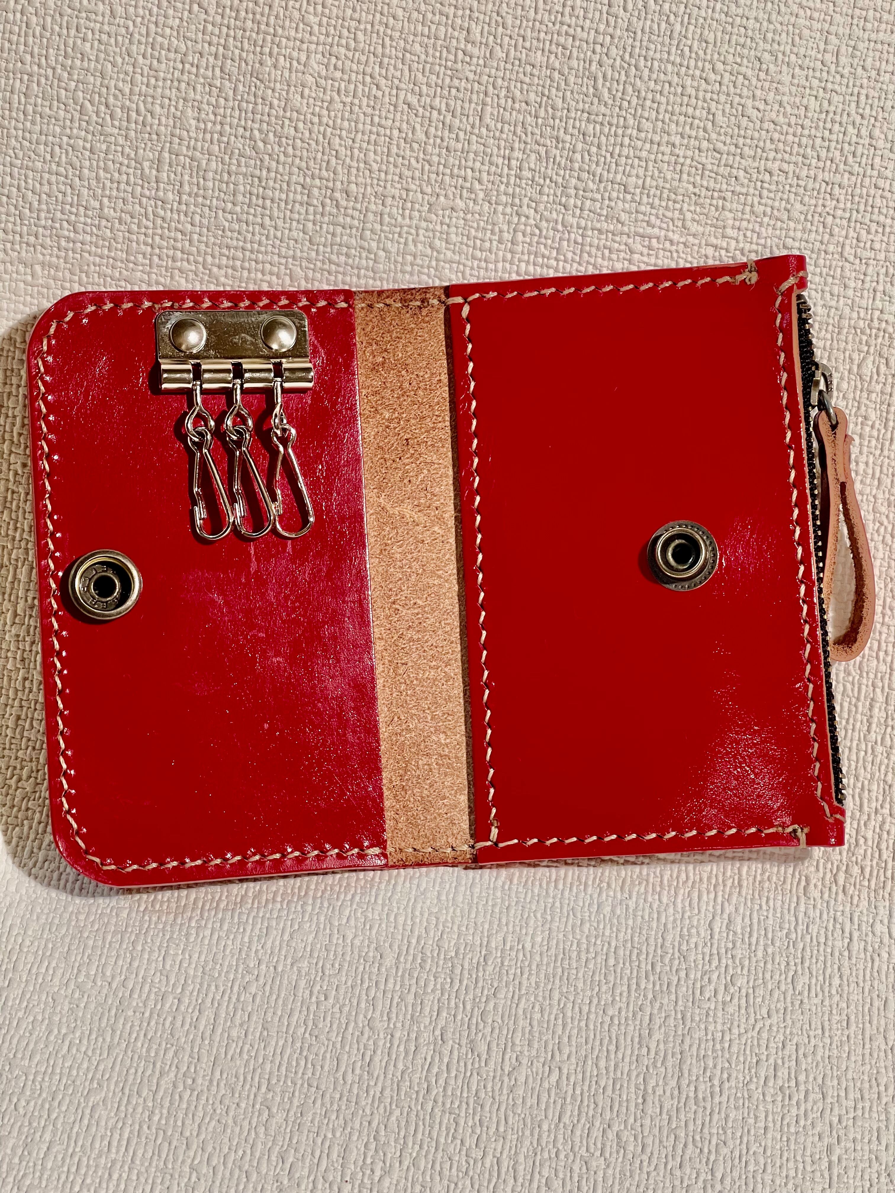 しっかりとしたヌメ革ラティーゴを使った、コインケース付きキーケースになります。