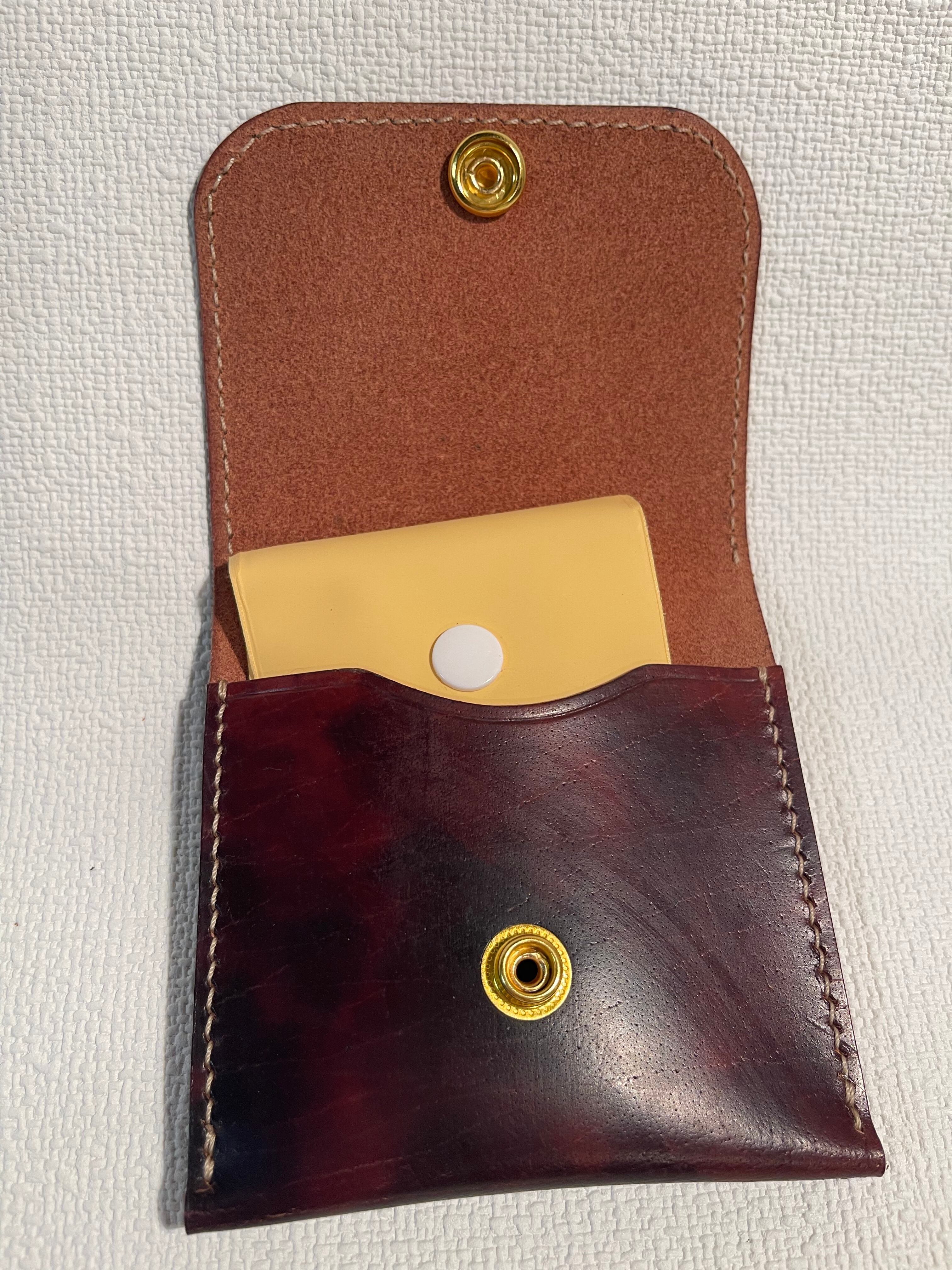 手染めでアンティーク調に染めたヌメ革を使った小物入れ(携帯灰皿)(コインケース)になります。
