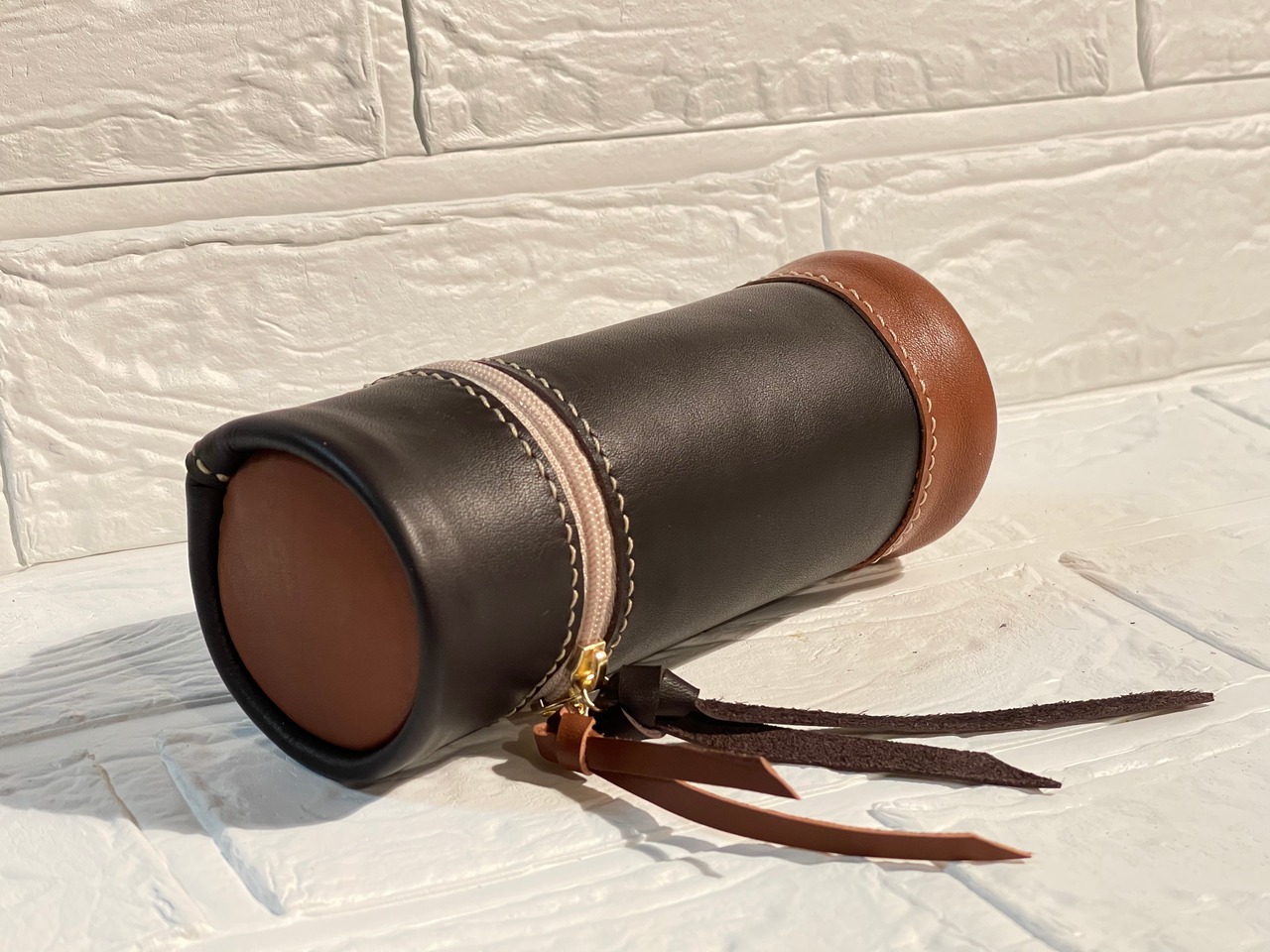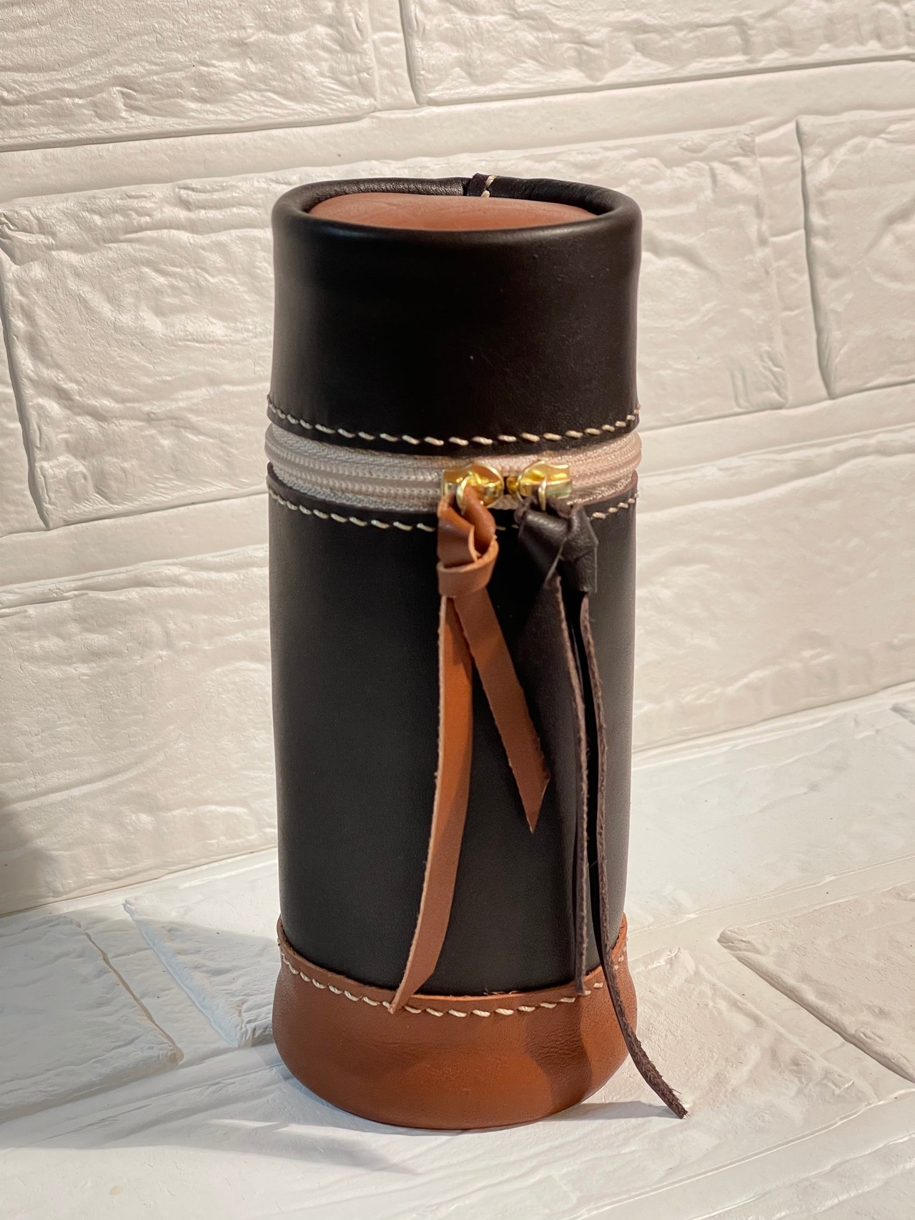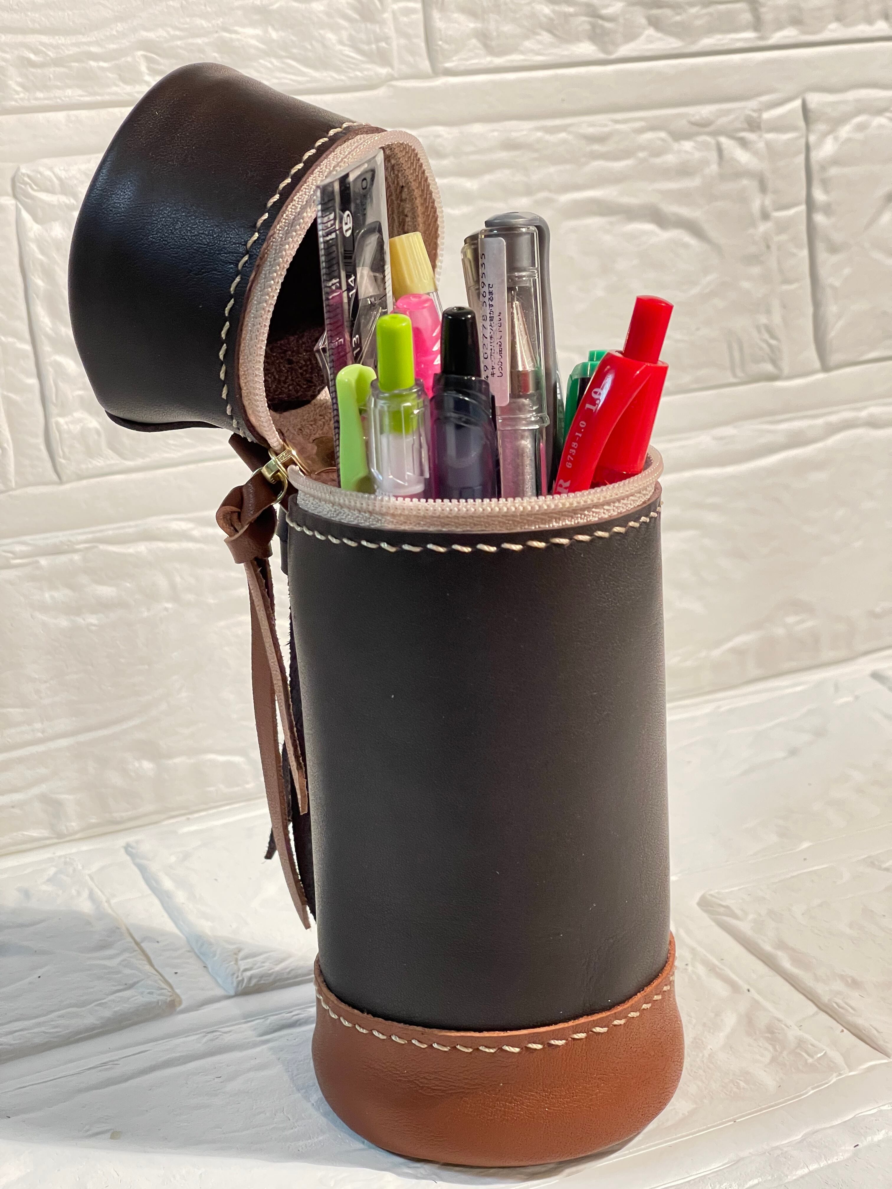 手触りの良い姫路レザーを使った、円筒型スタンドペンケースになります。