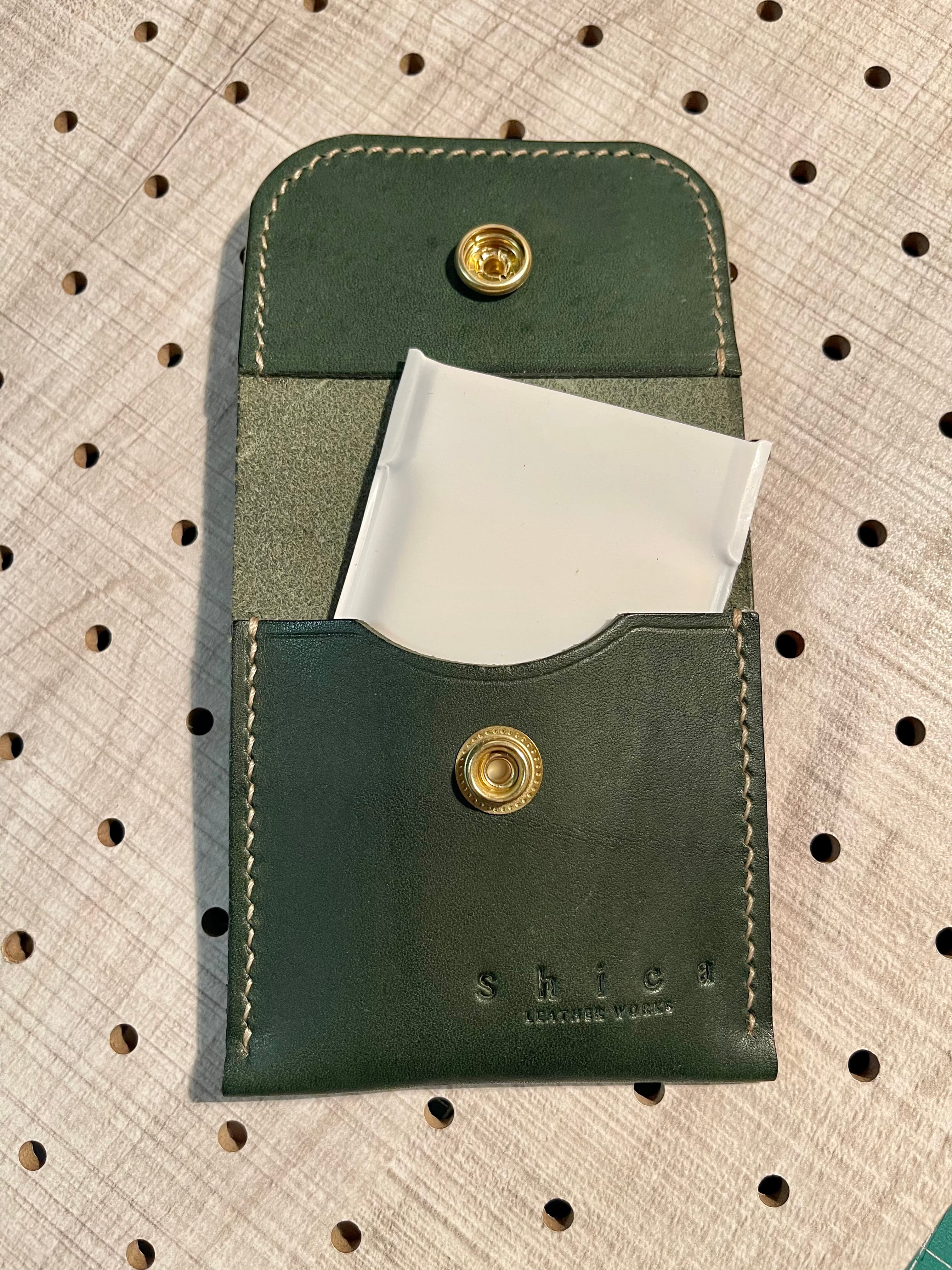 しっかりとした栃木レザーを使い、総手縫いで仕上げた携帯灰皿(コインケース・小物入れ)になります。