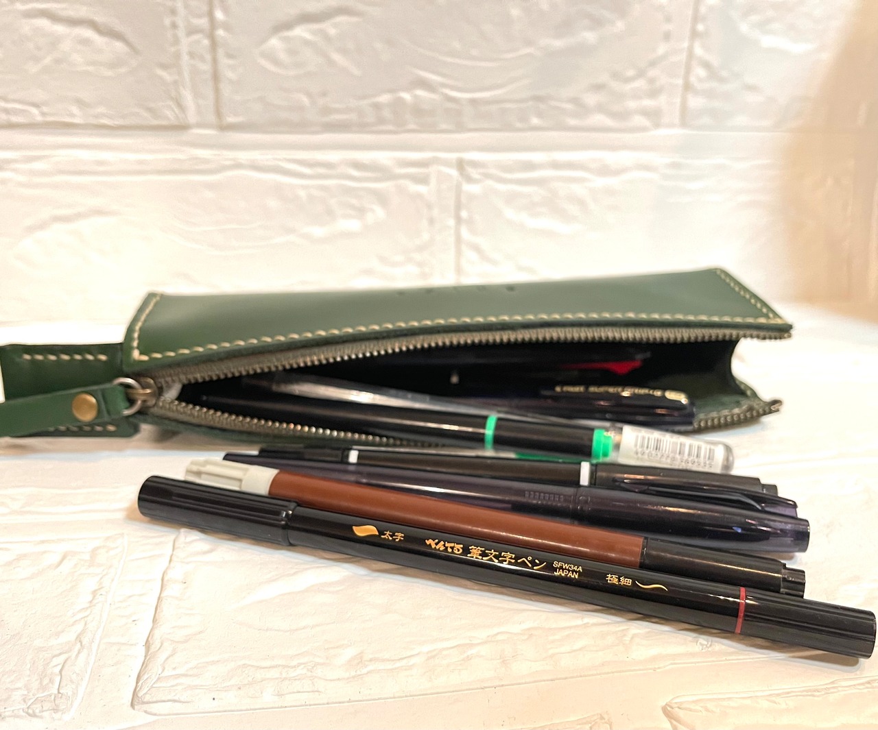 通常のペン類であれば、15〜20本位、長い筆ペンなどもしっかり入ります。