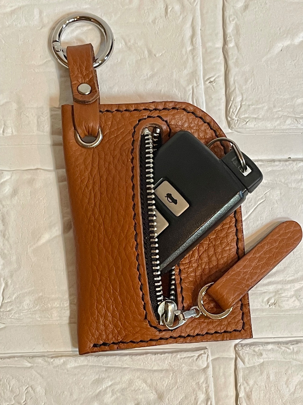 質感の良いシュリンクレザーを使ったスマートキーケースになります。