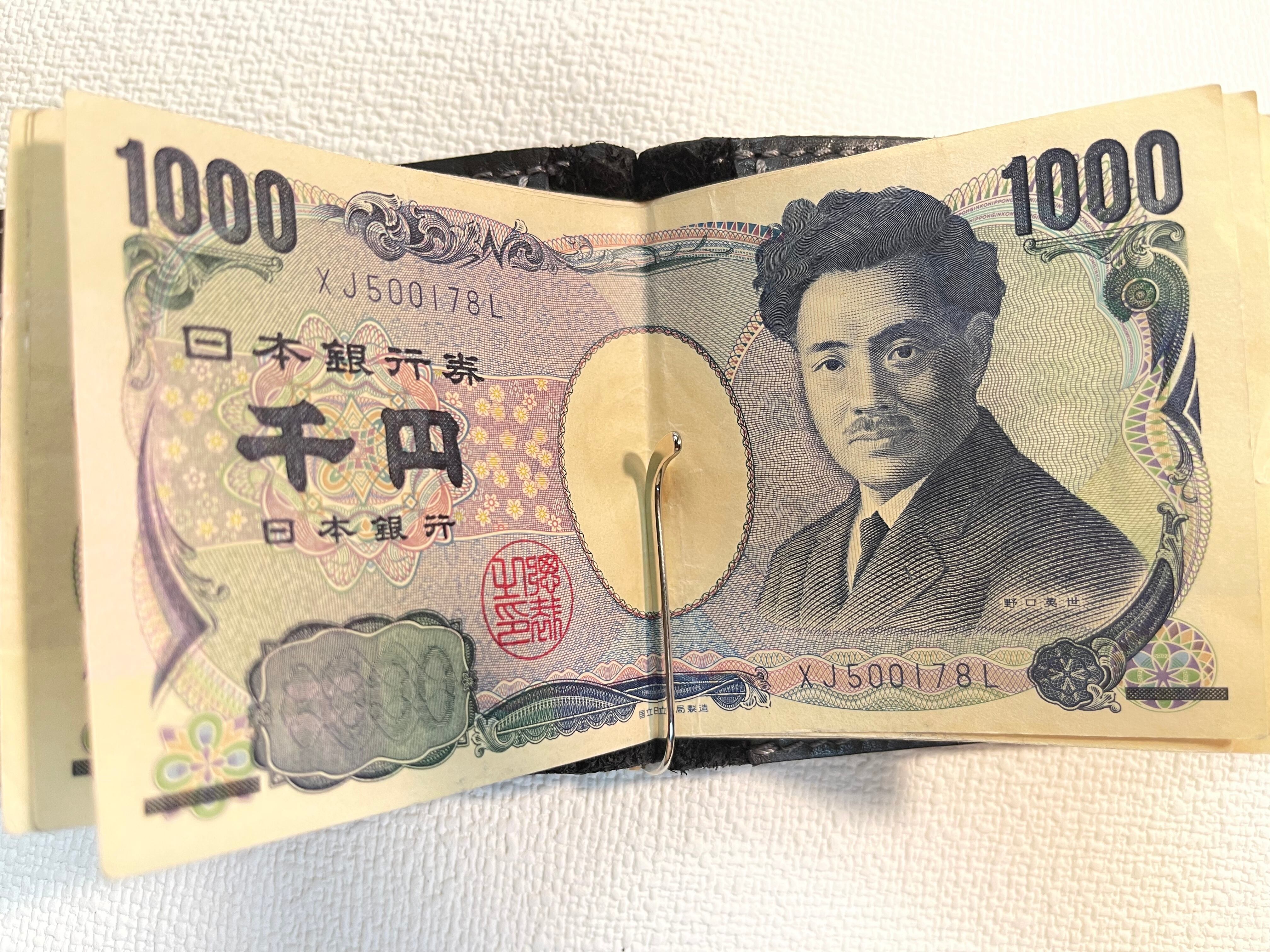 傷の付きにくいシュリンクレザー(牛革)を使ったマネークリップになります。