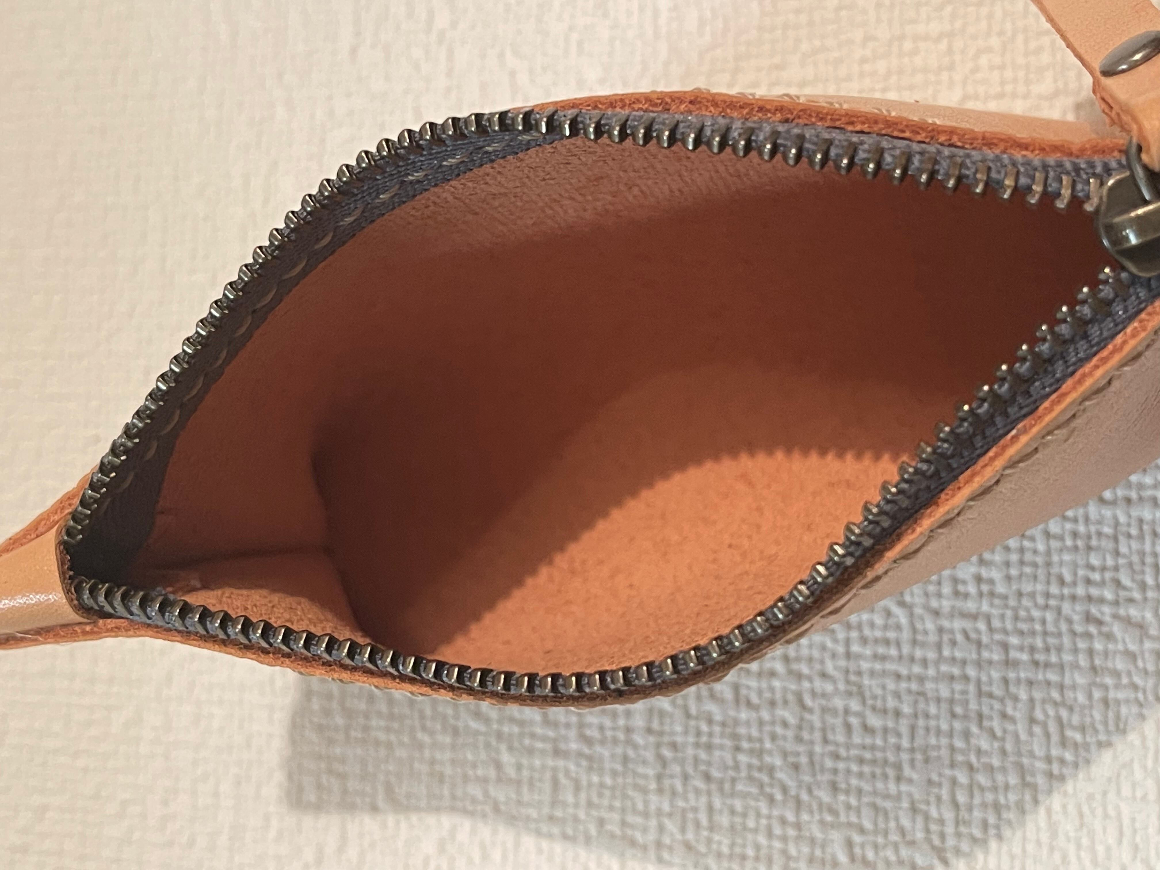 天然の革ですので、トラ、血筋、傷などがある事があります。革製品ですので、濡れた時には早めに乾いた布で水滴を吸い取り、その後通気の良い場所で陰干しするよう心掛けてください。