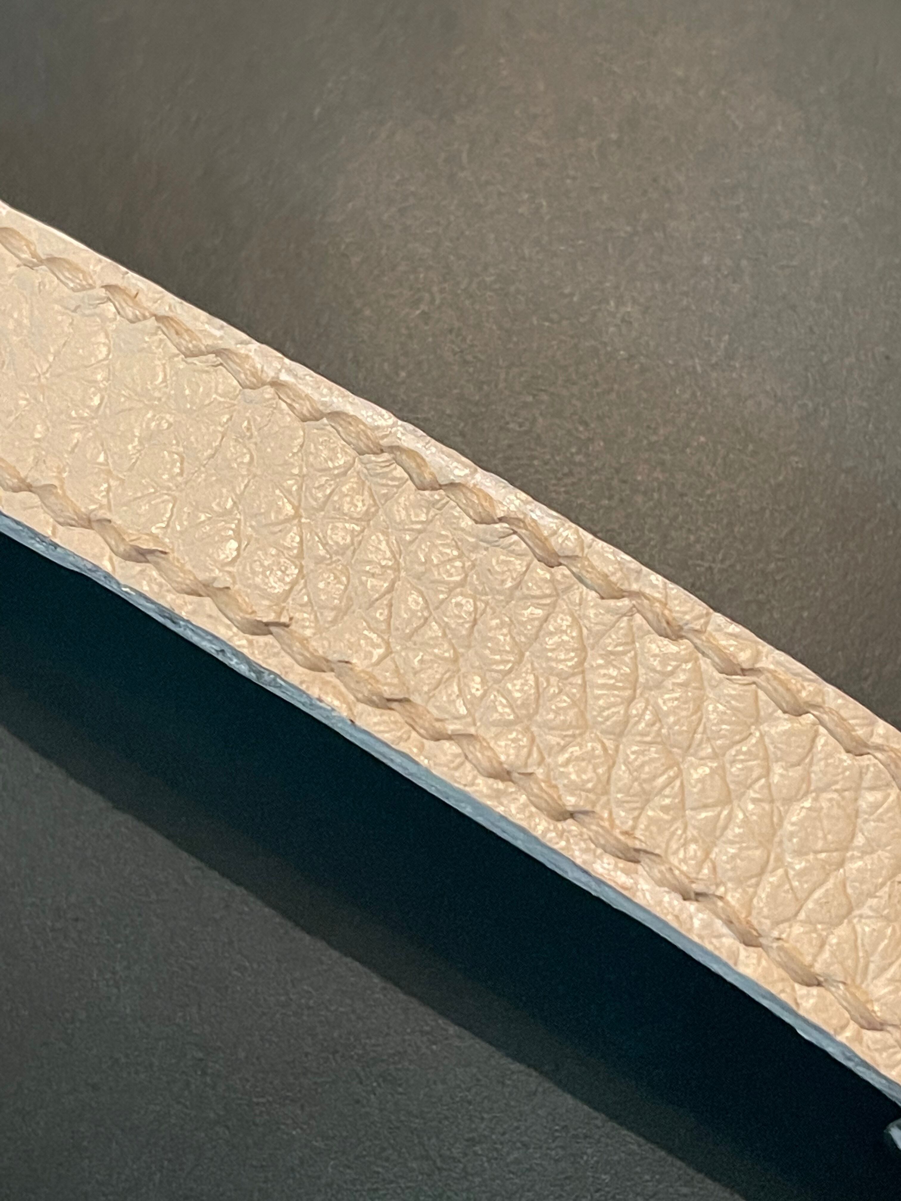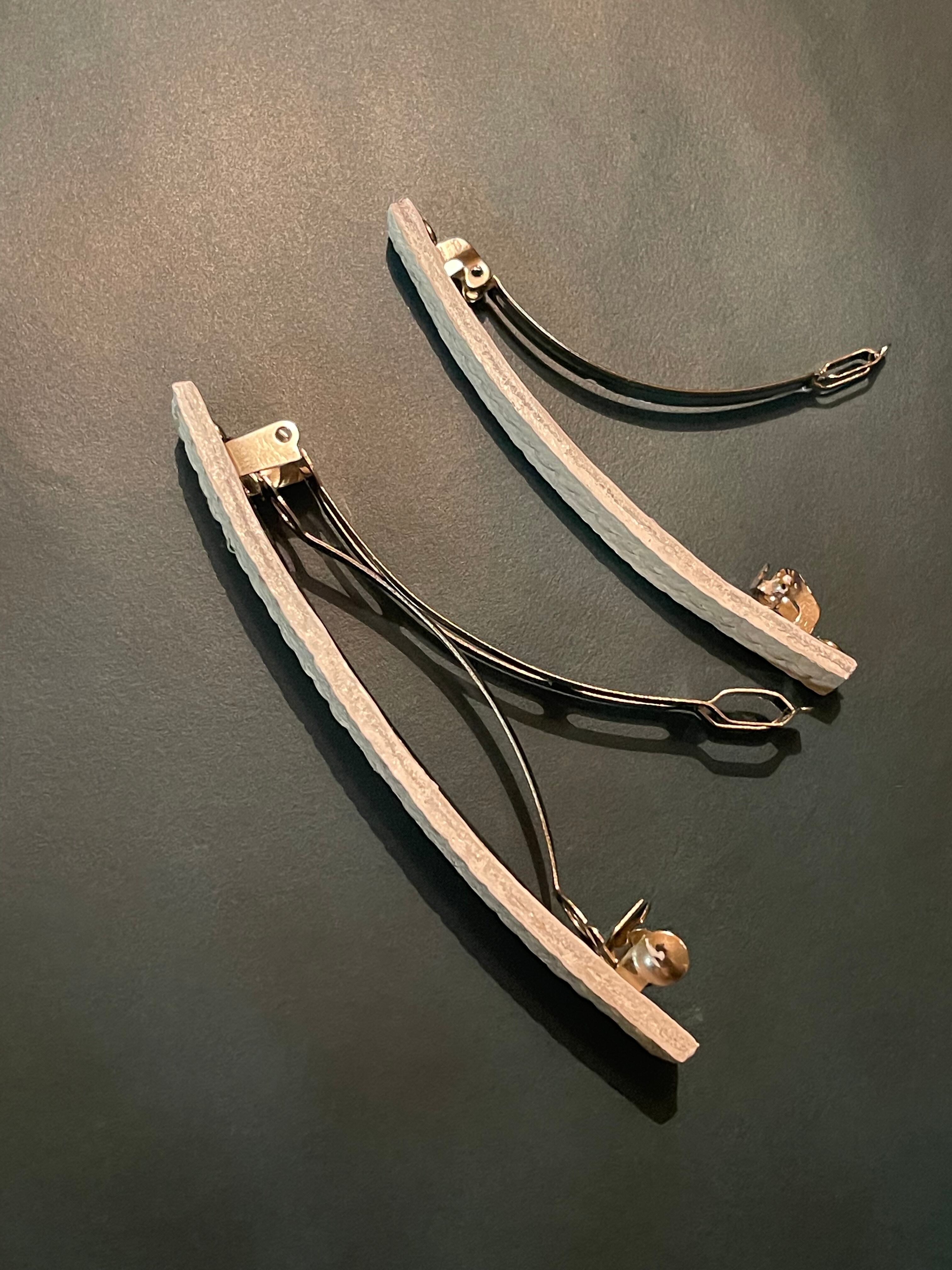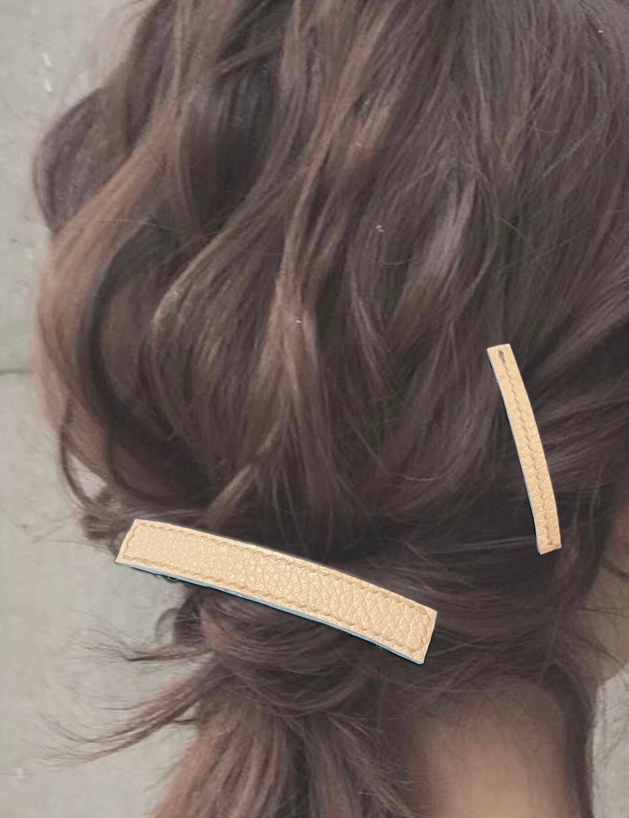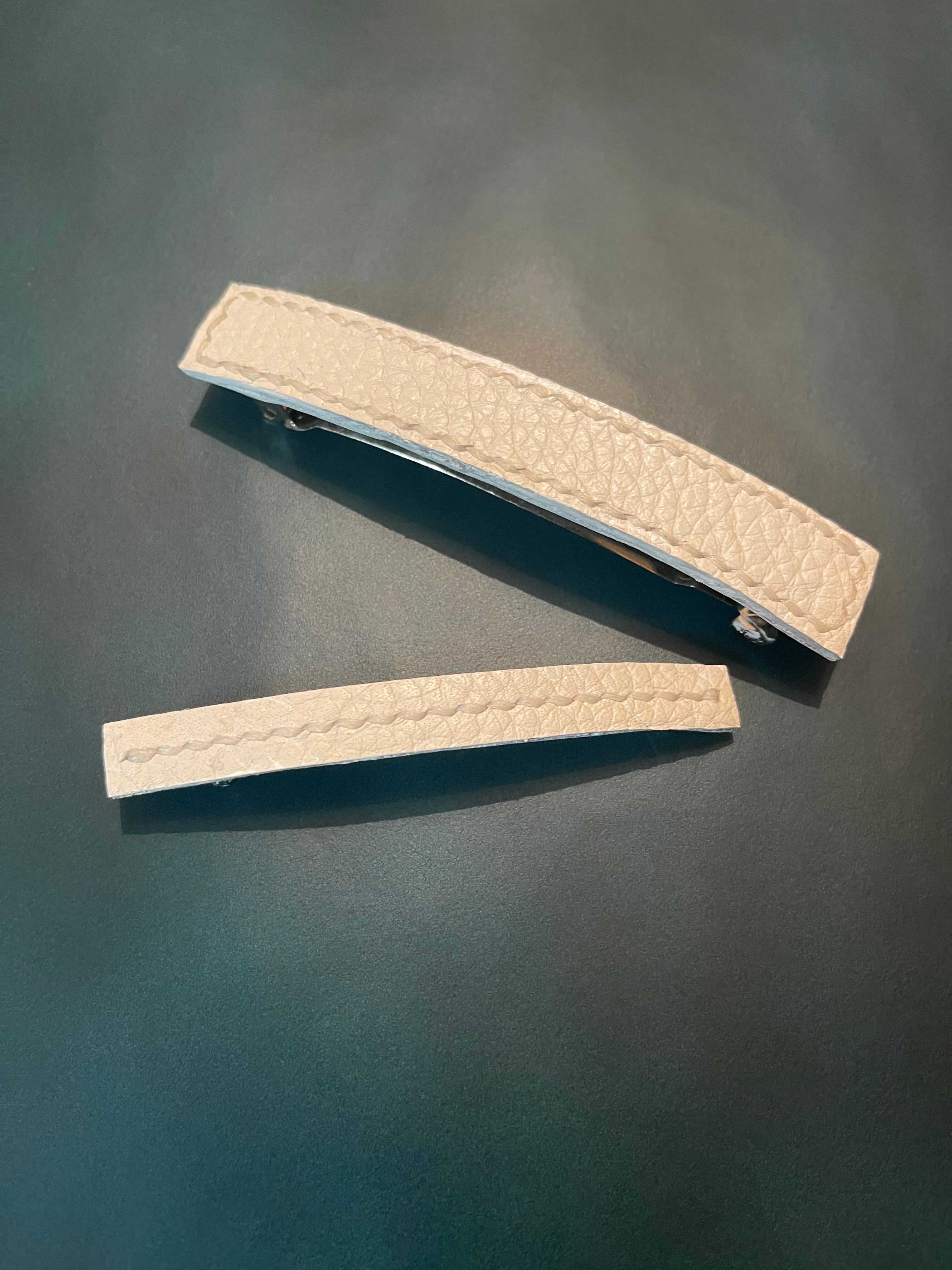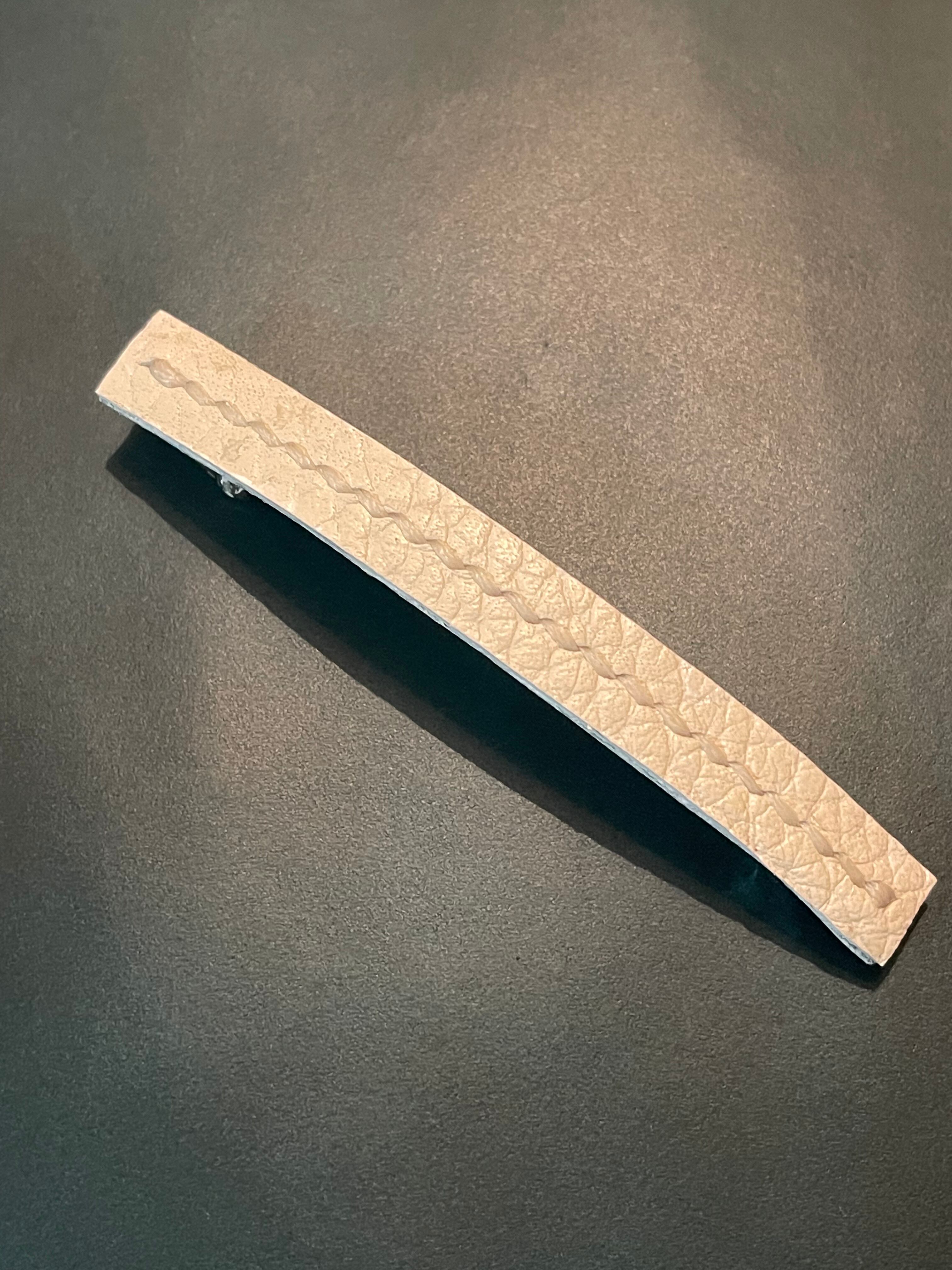 ホワイトのシュリンクレザー(牛革)を使ったヘアバレッタになります。