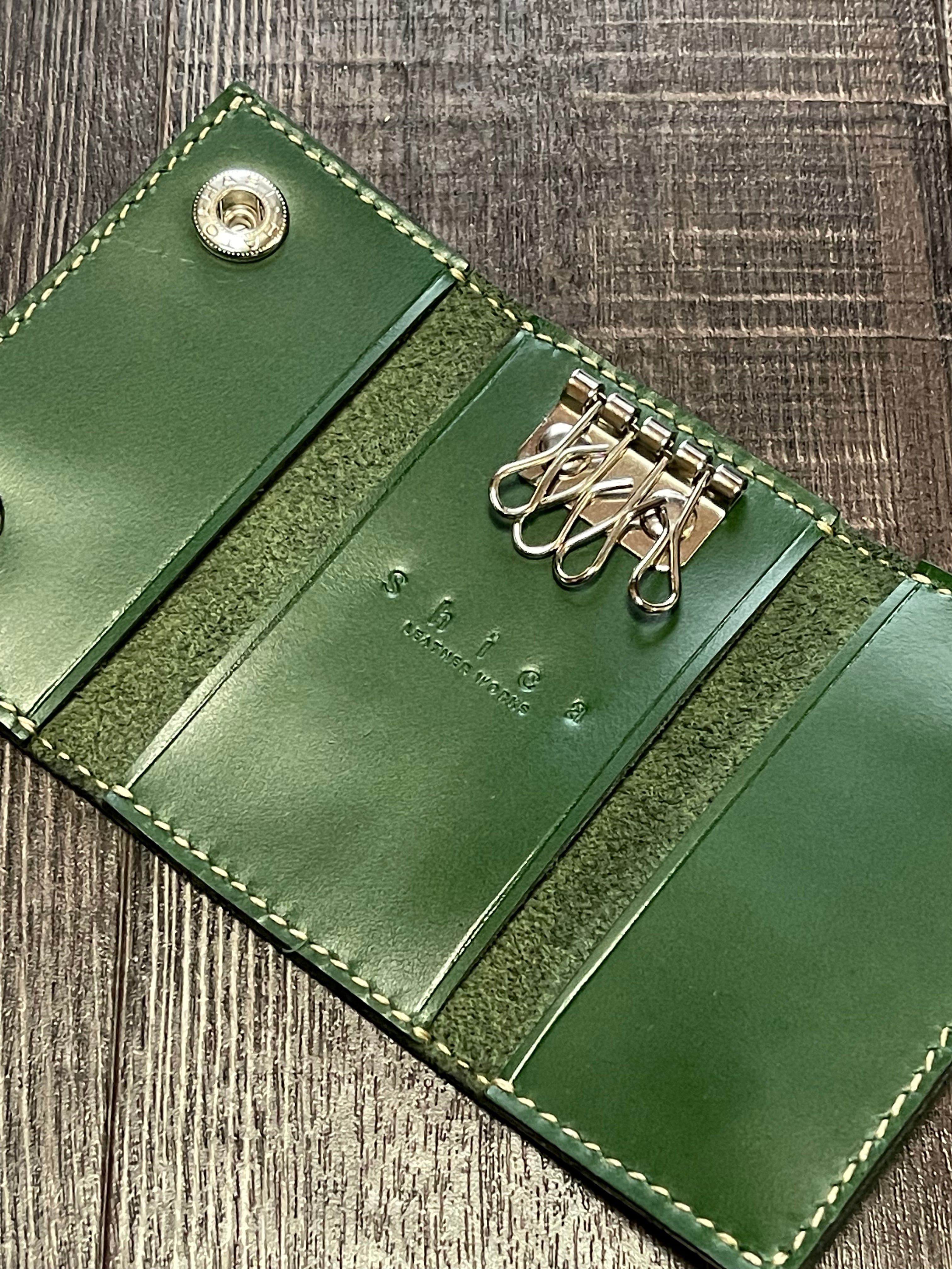 艶の良い本革(牛ヌメ革)を使ったキーケースになります。