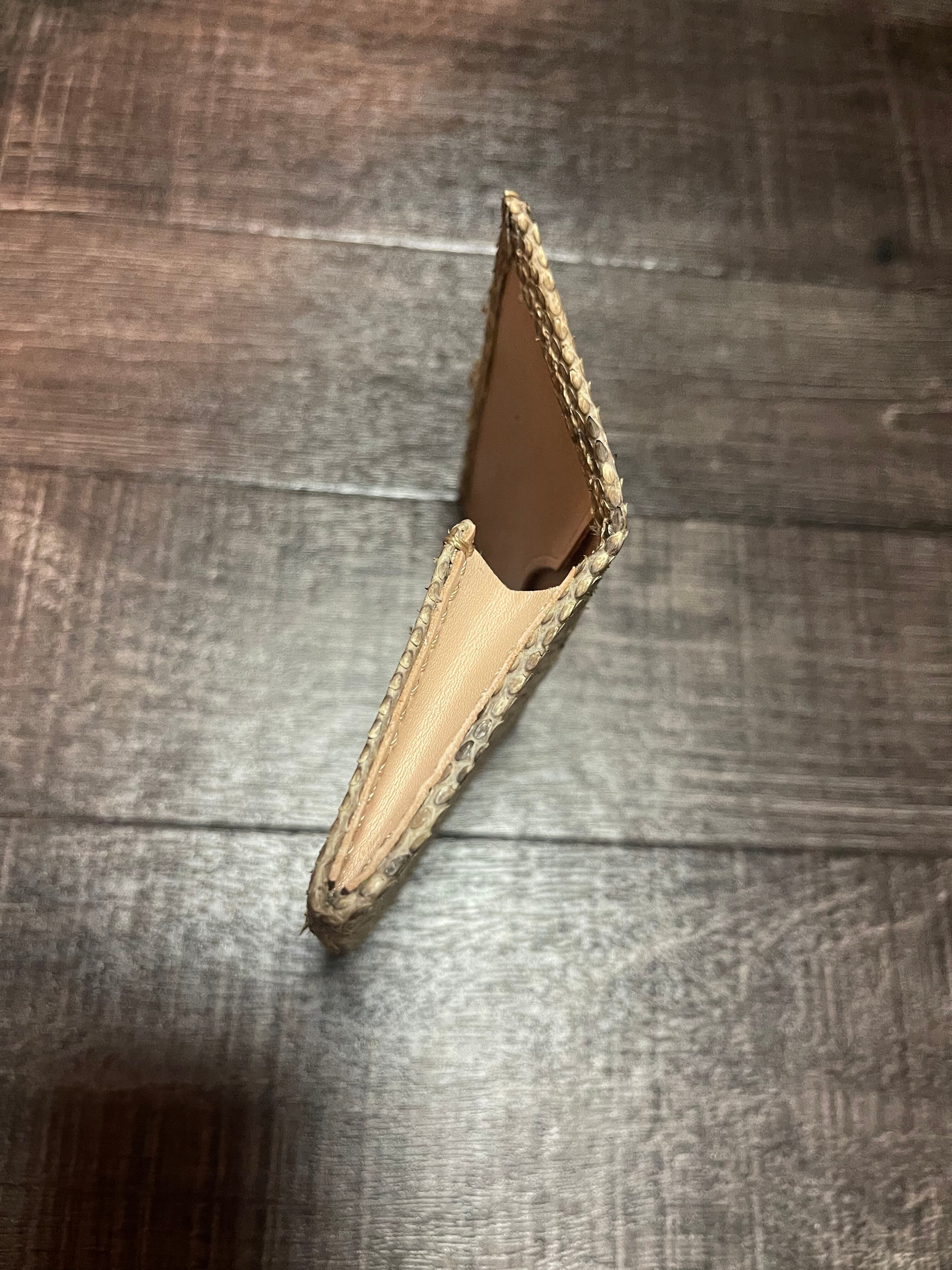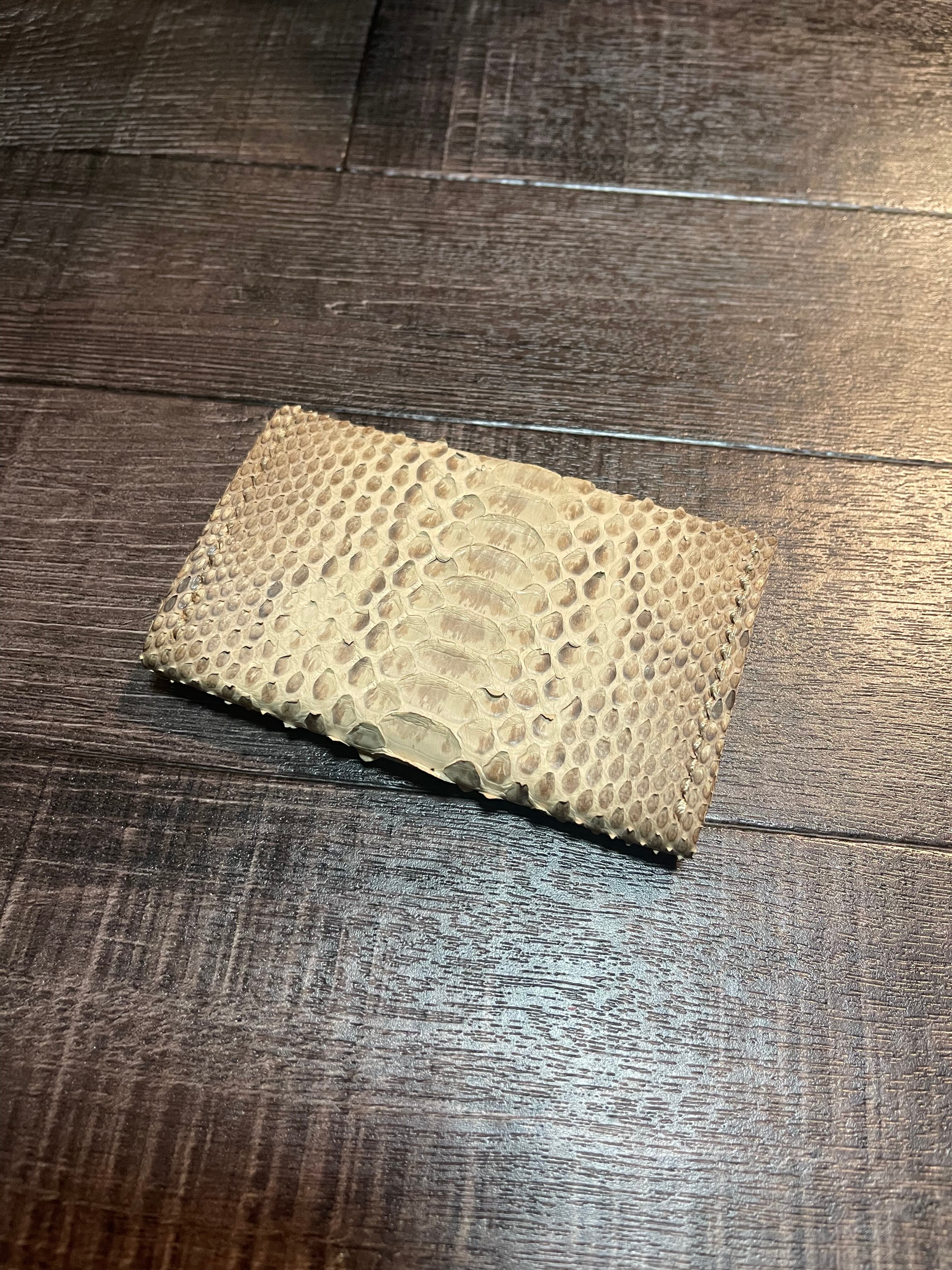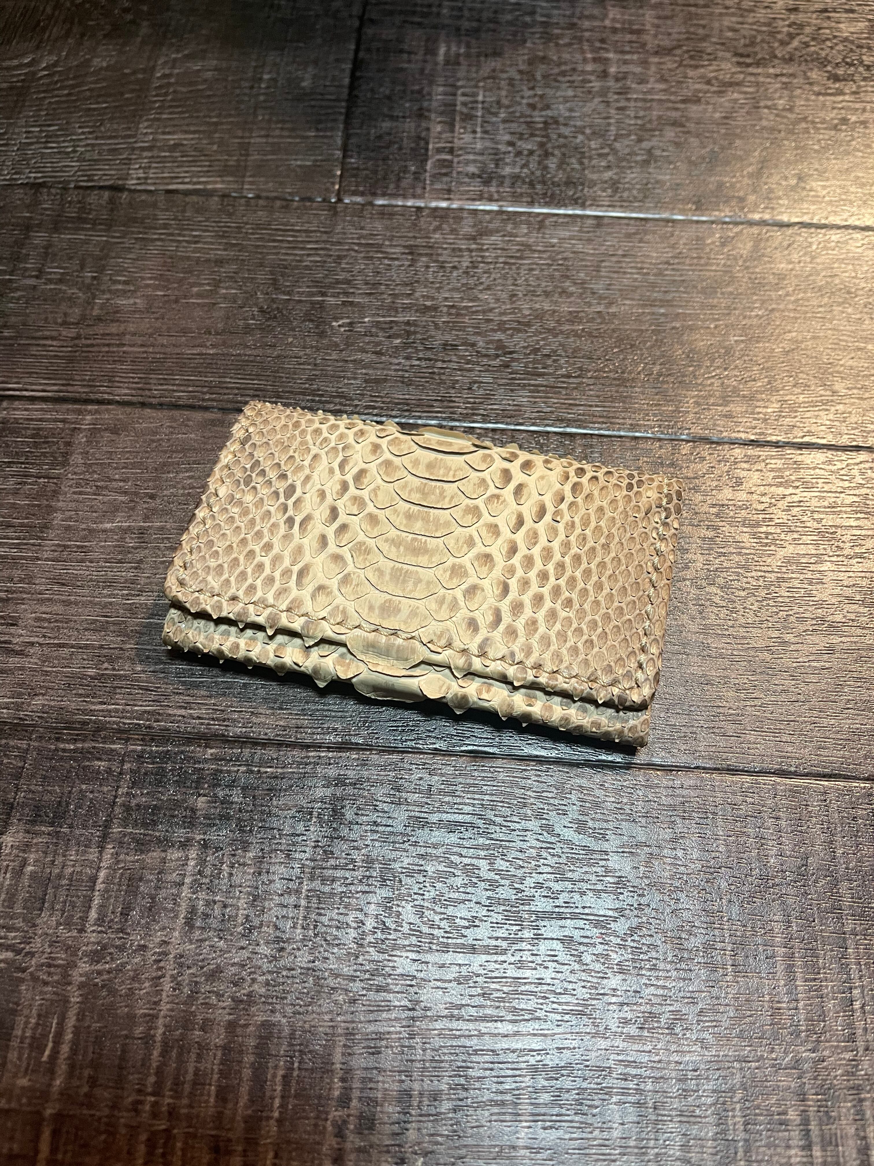 パイソン本革とキナリヌメ革を使った名刺入れになります。