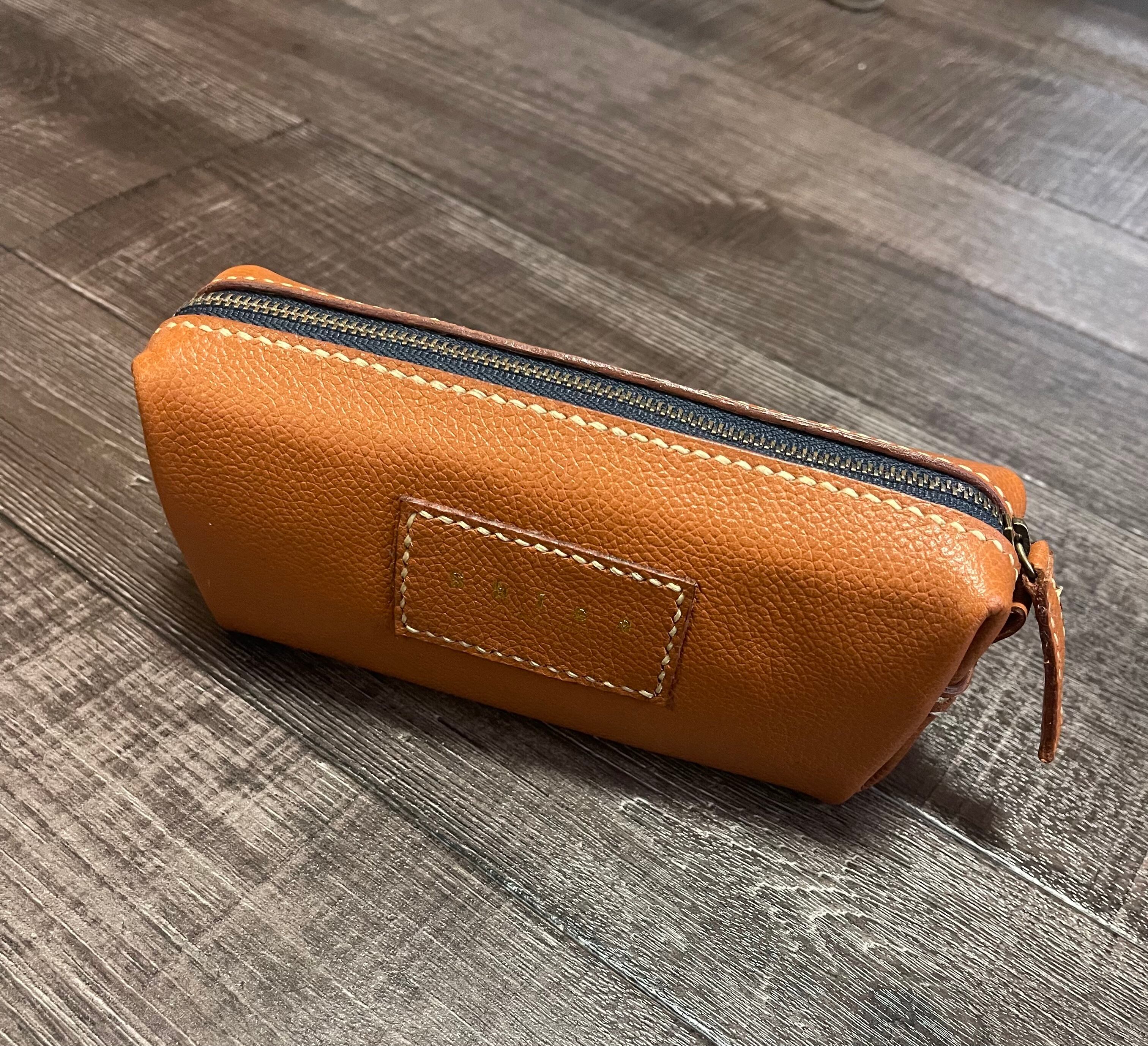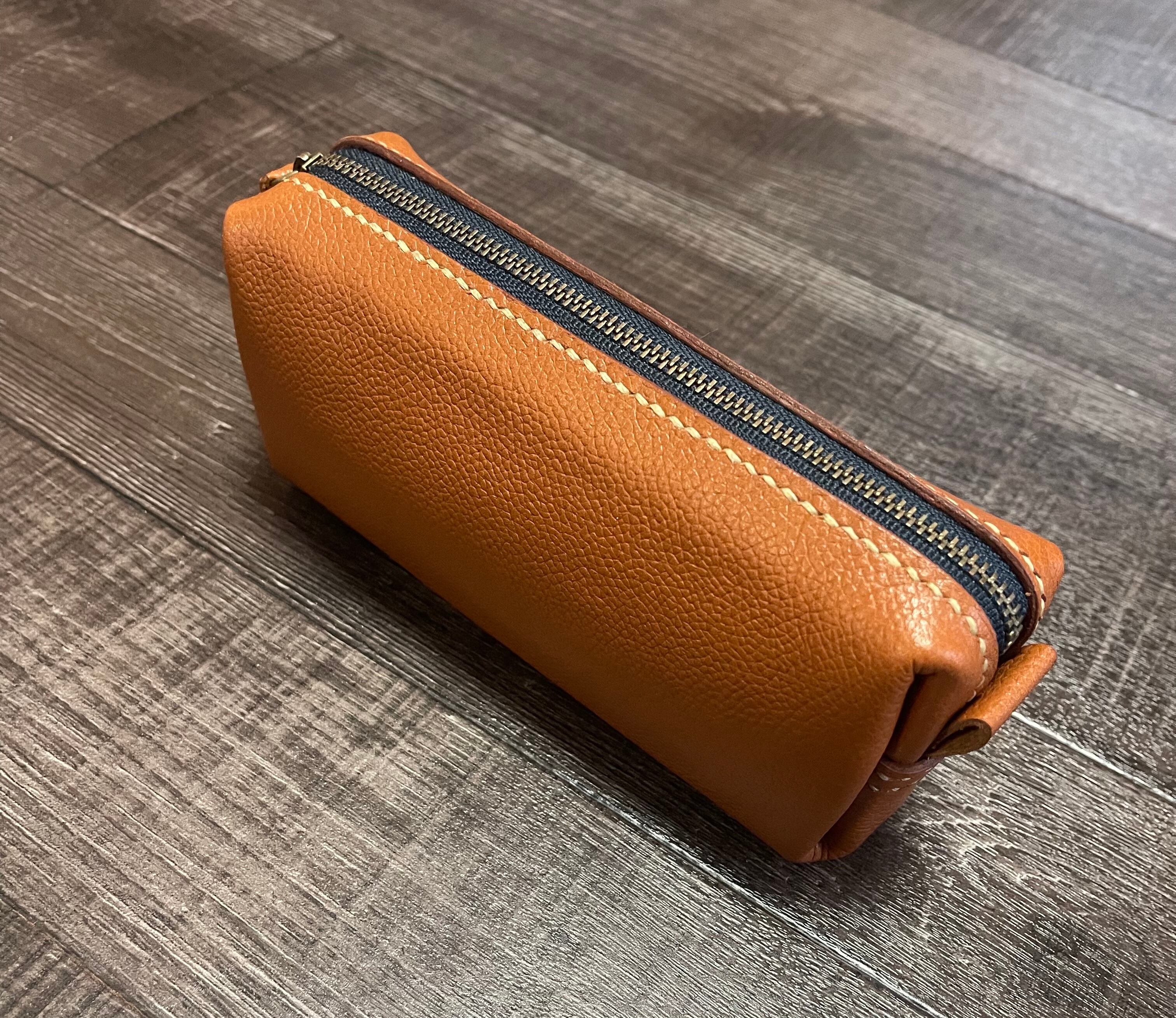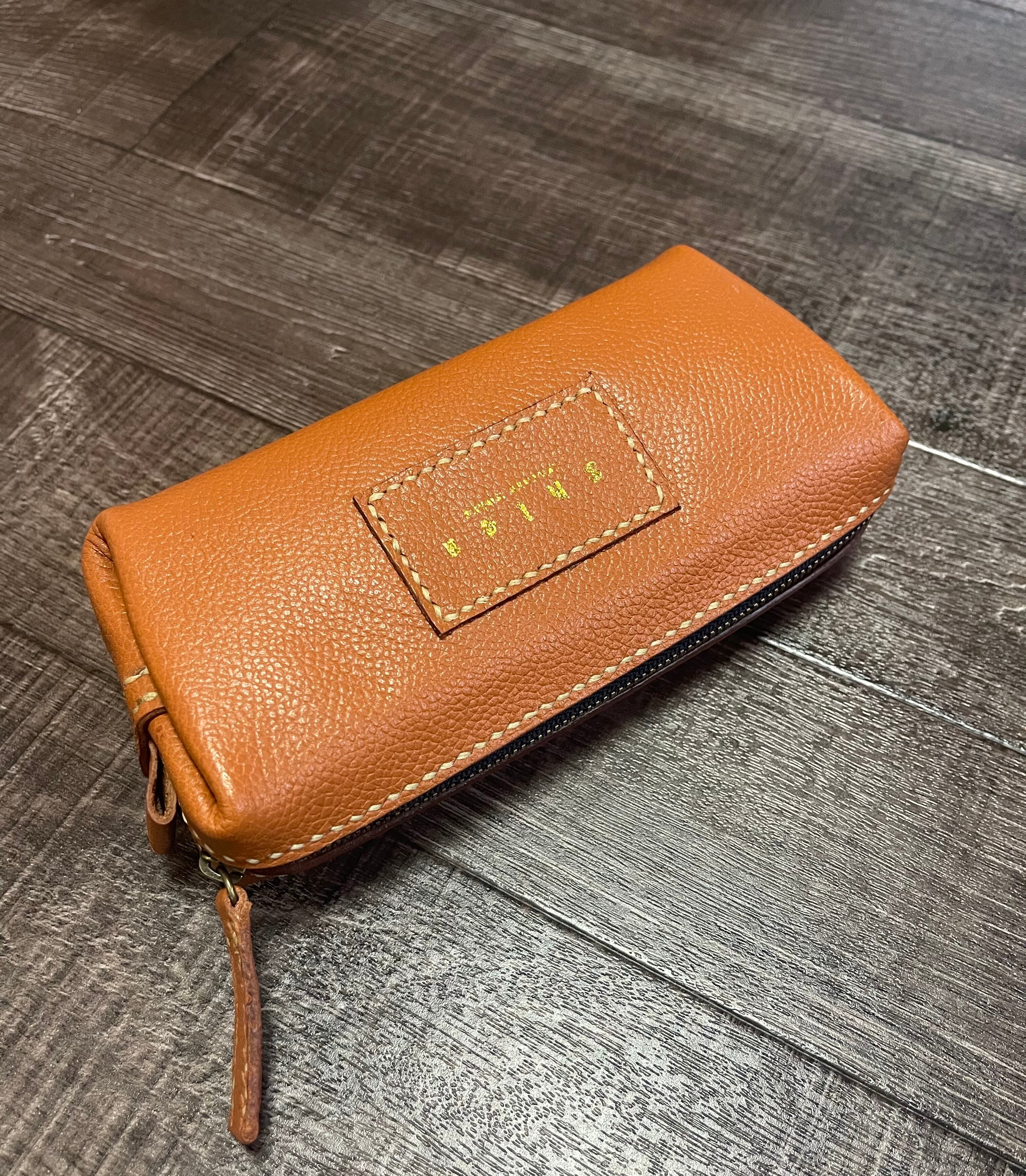 姫路レザー(本革)シュリンク型押し使った、大容量ペンケース(小物入れ)になります。
