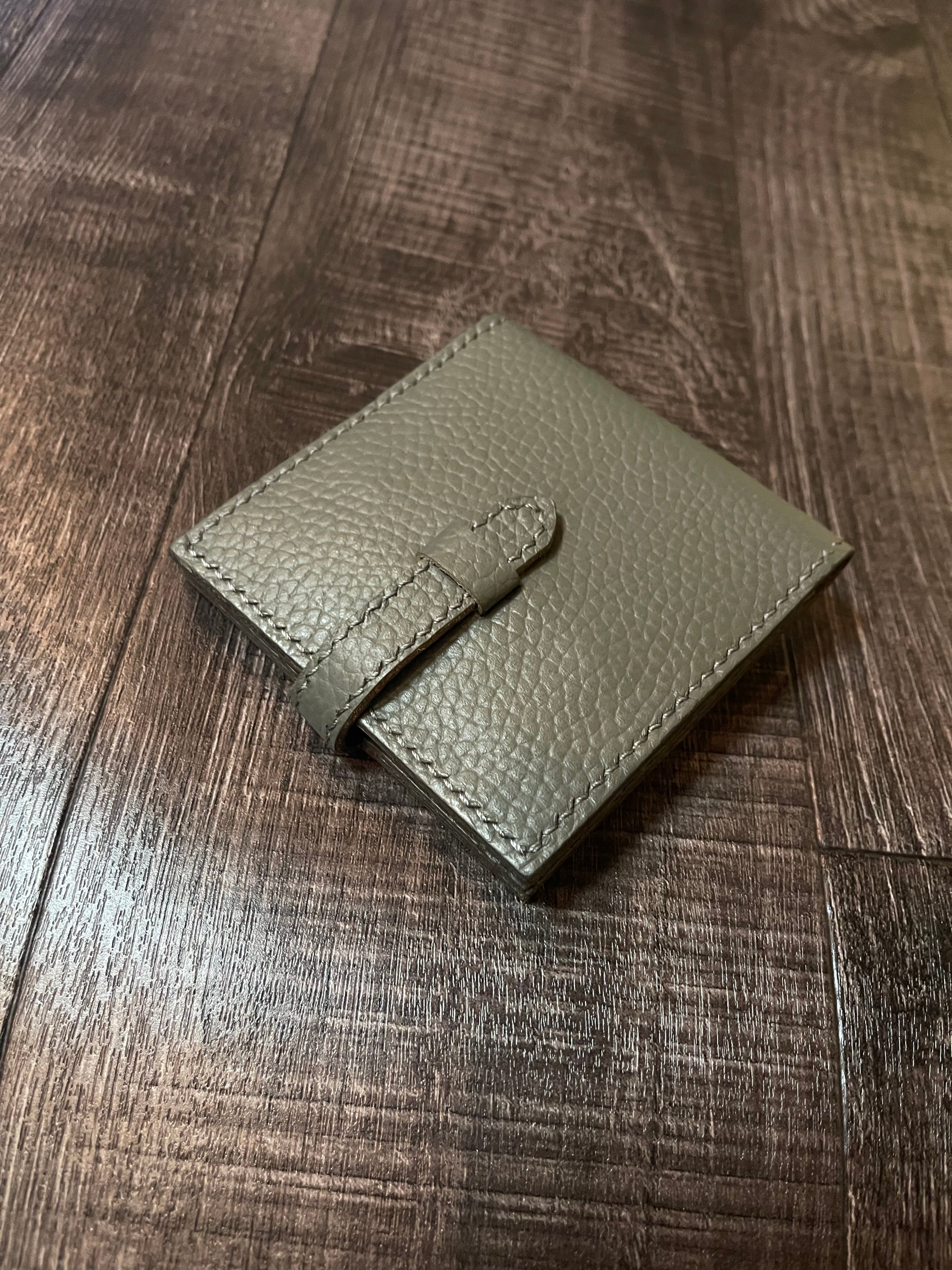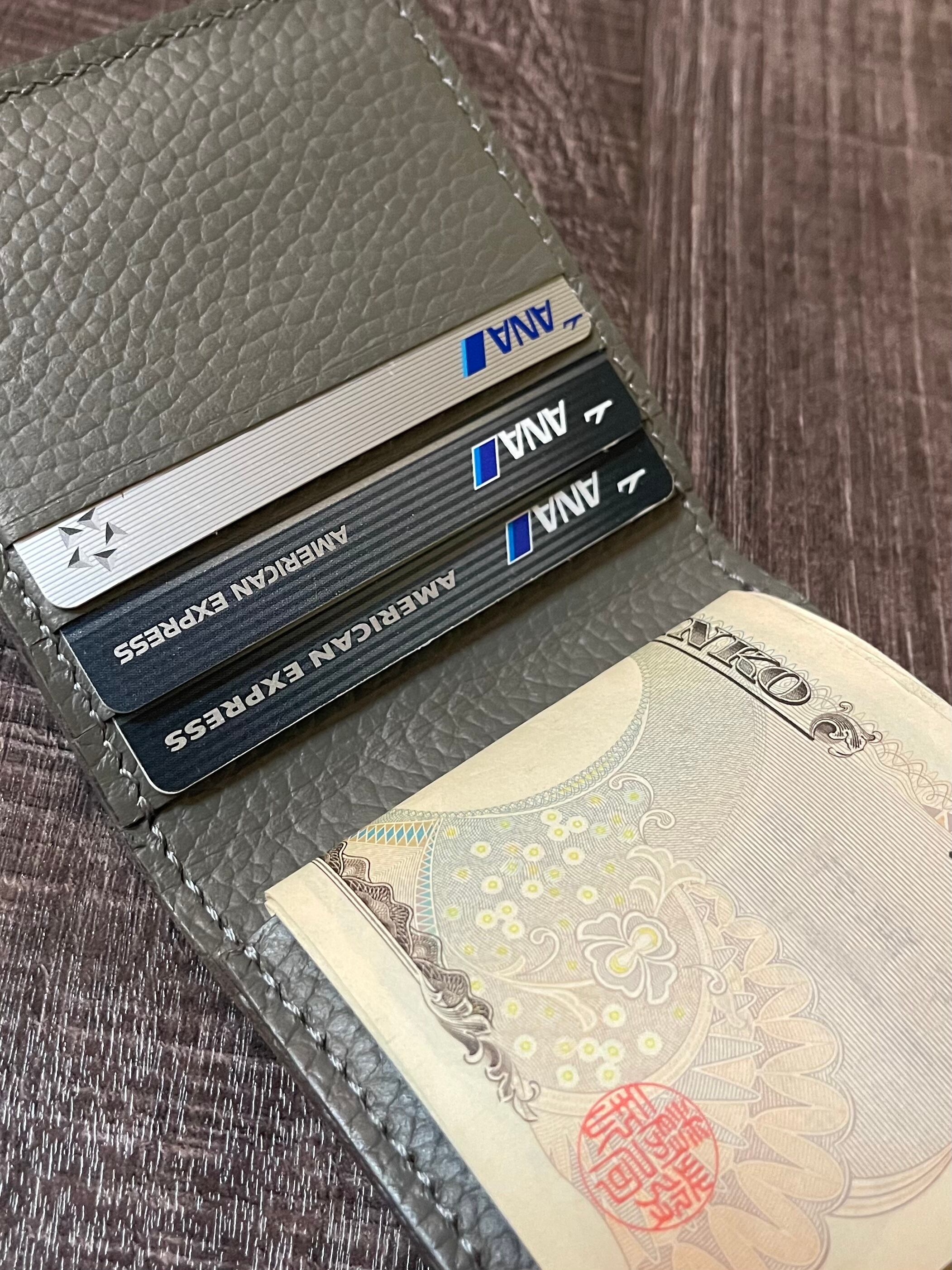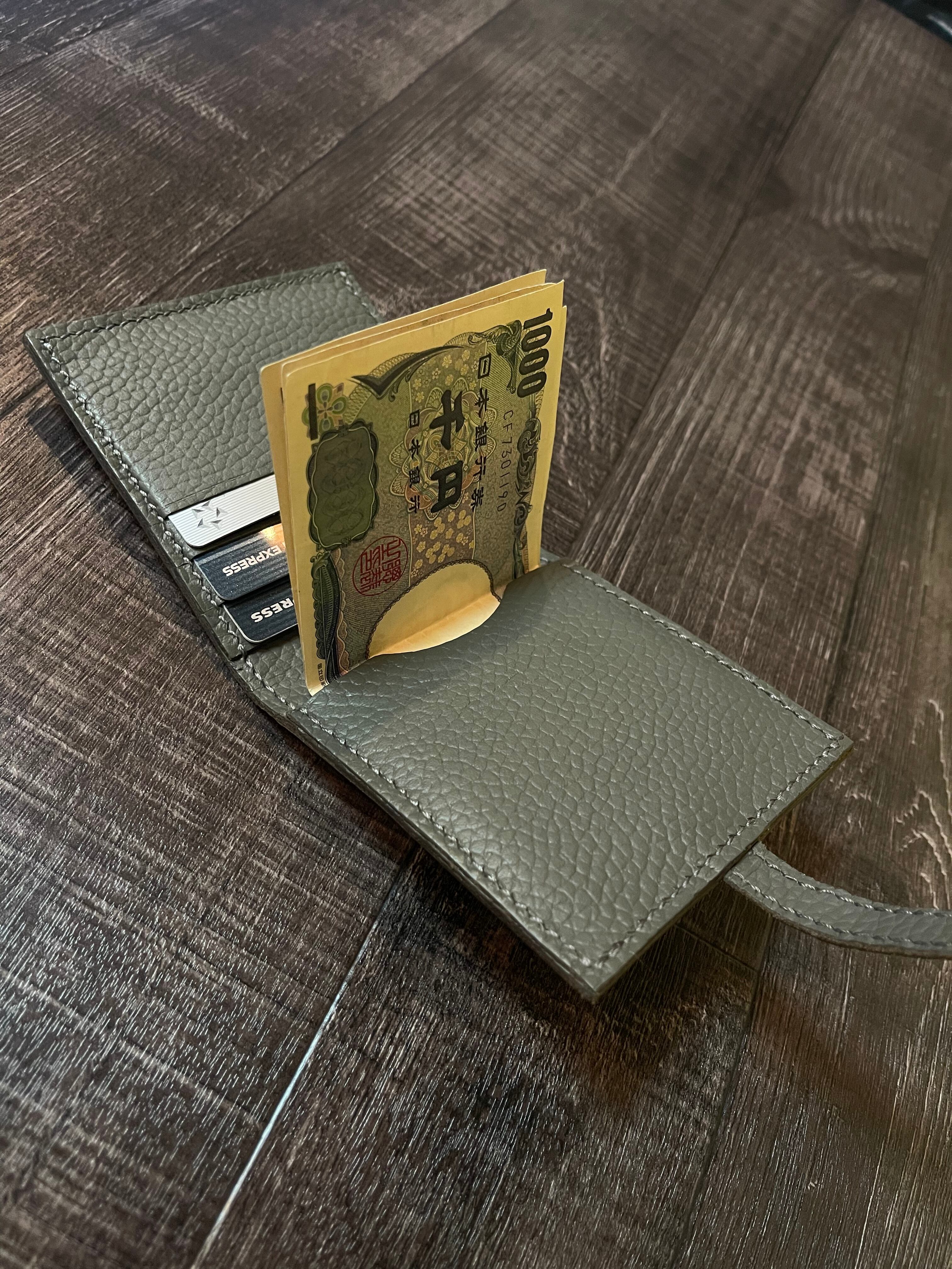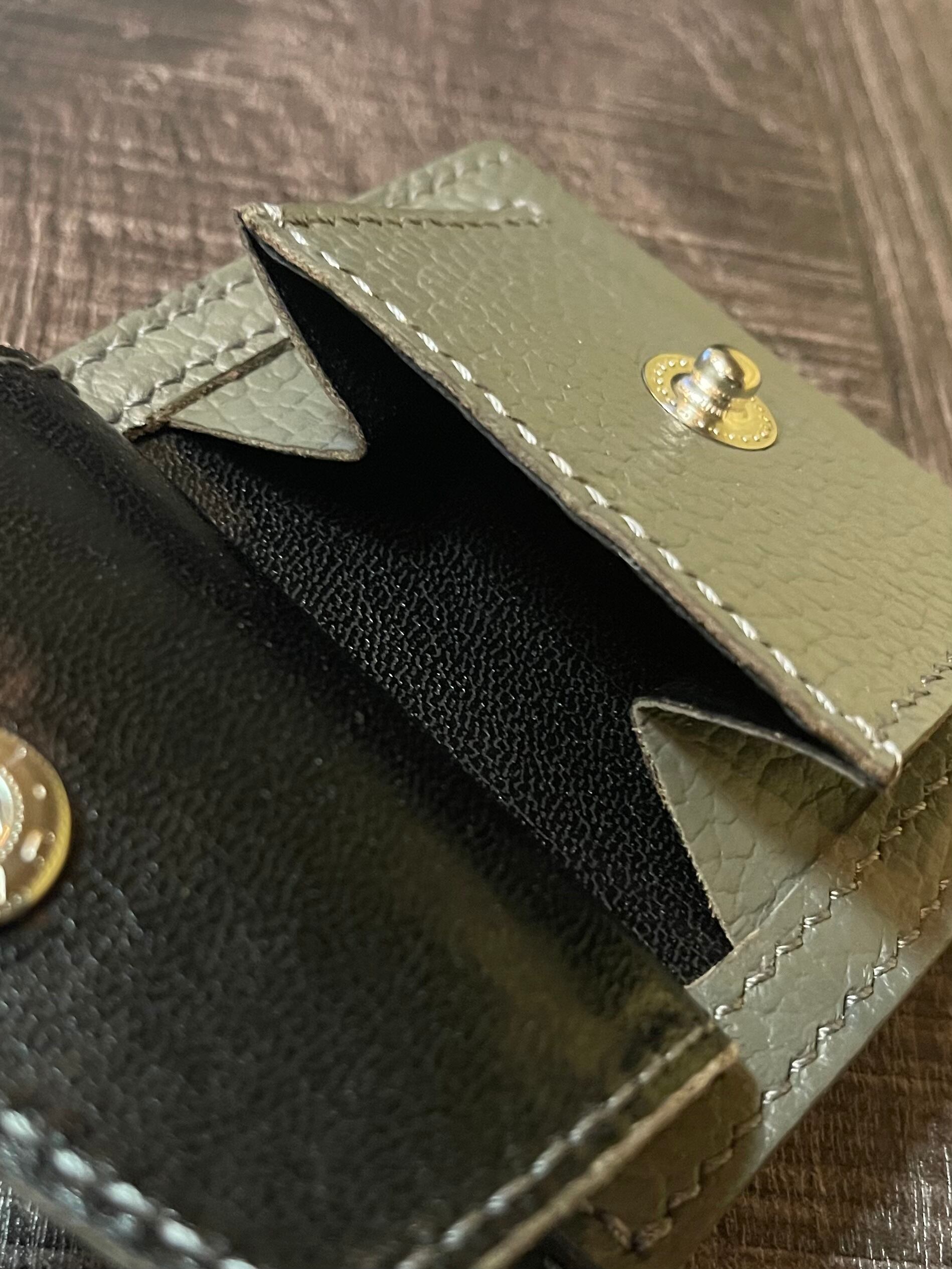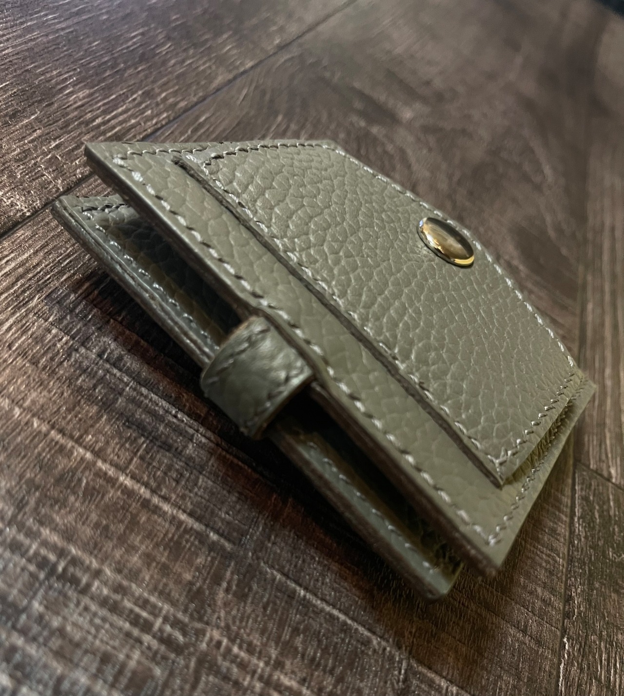 シュリンク型押しのハリのある牛革を使ったカードウォレットになります。